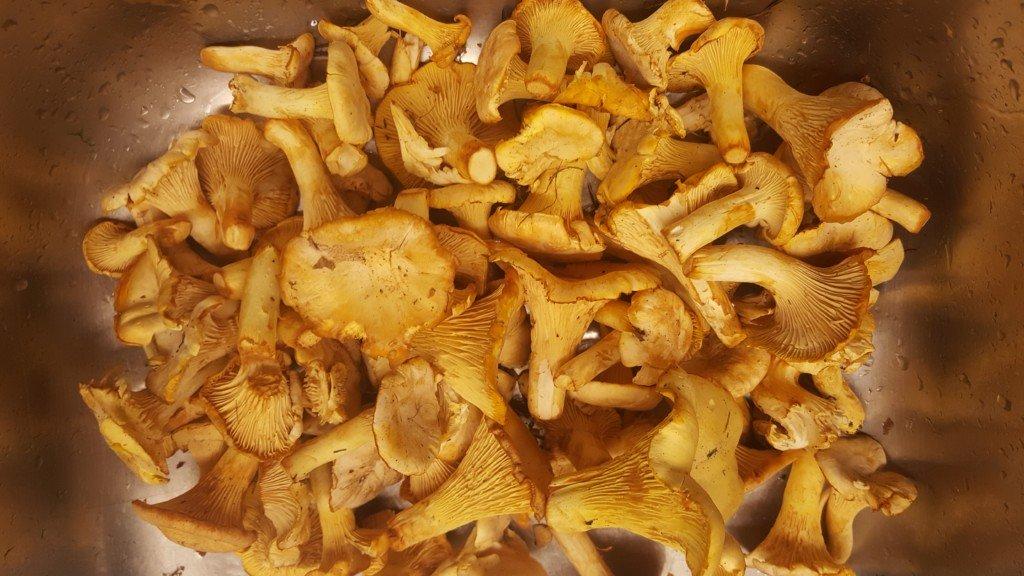 Efter en sommar som bara innehållit fyra regndagar på lika många månader (och en av de få blöta dagarna var förstås midsommarafton…), och när det är så torrt i skogen att det riktigt dammar – då öppnade det sig plötsligt en glänta, där det lyste av närmare hundra kantareller!