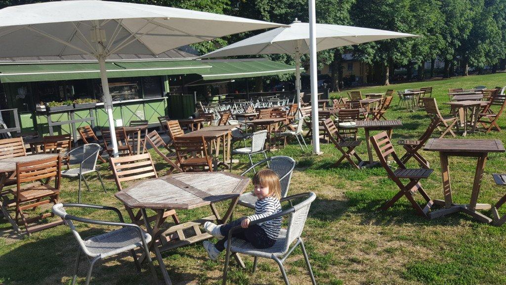 Restaurangen i Tessinparken, Stockholm, klockan 16 i dag. Här brukar vara fullsatt. Av soldyrkare, lunchgäster, barnfamiljer.