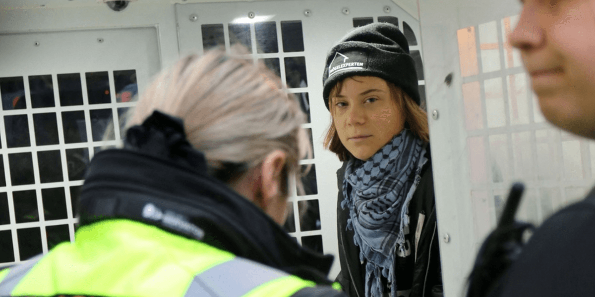 Londonpolisen uppger att Greta Thunberg gripits för att ha hållit upp ett plakat till stöd för den bannlysta organisationen Palestine Action, i strid med Storbritanniens terrorlagar.