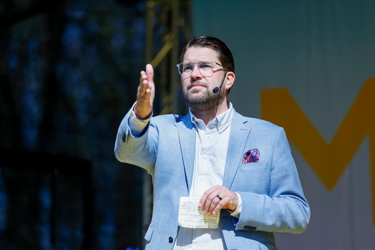 Vi sverigedemokrater står fullt ut bakom Sveriges humanitära och militära stöd till Ukraina, sade Åkesson.Het EU-valsfråga
