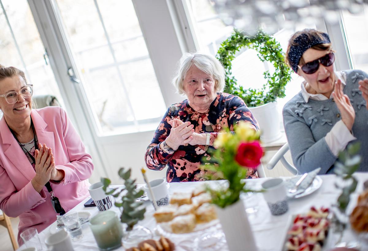 Det pratas och skojas runt bordet i lägenheten i Majorna i Göteborg. En gång i månaden samlas ett gäng kvinnor för att prata och dricka kaffe och Harriet, 90, är en av de trogna besökarna.