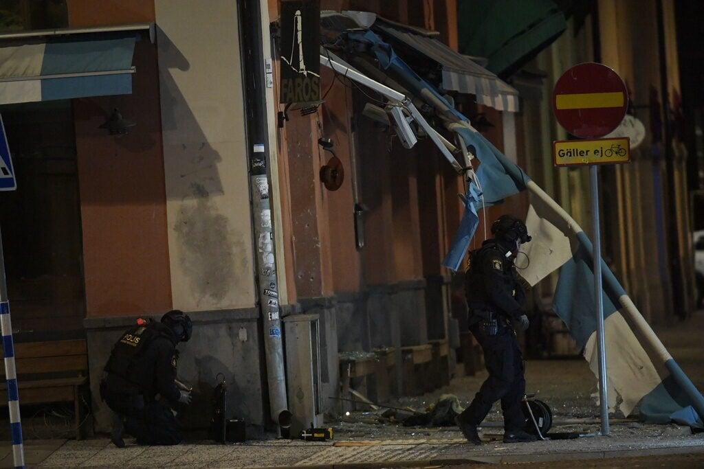 – Det är stora skador som krossat glas och skador på fasaden. Även en trappa upp där det är bostäder har fasad och fönster skadats, säger polisens presstalesperson Ola Österling.