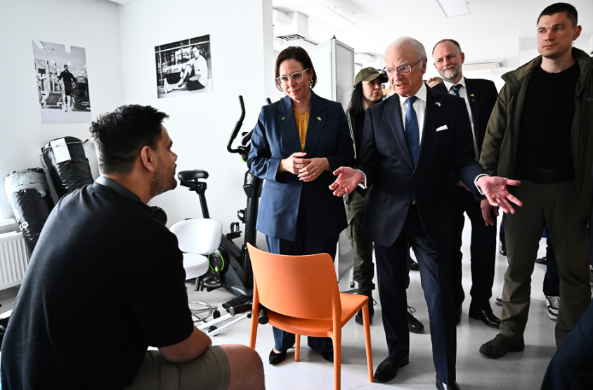 Kungen och utrikesministern tog sig till Superhumans‑centret, där krigsskadade ukrainare får behandling och rehabilitering.