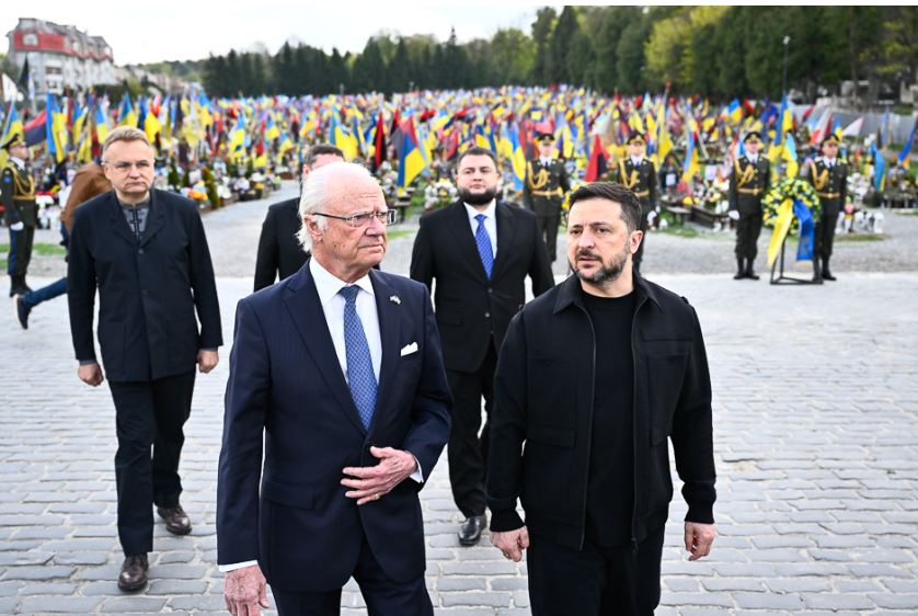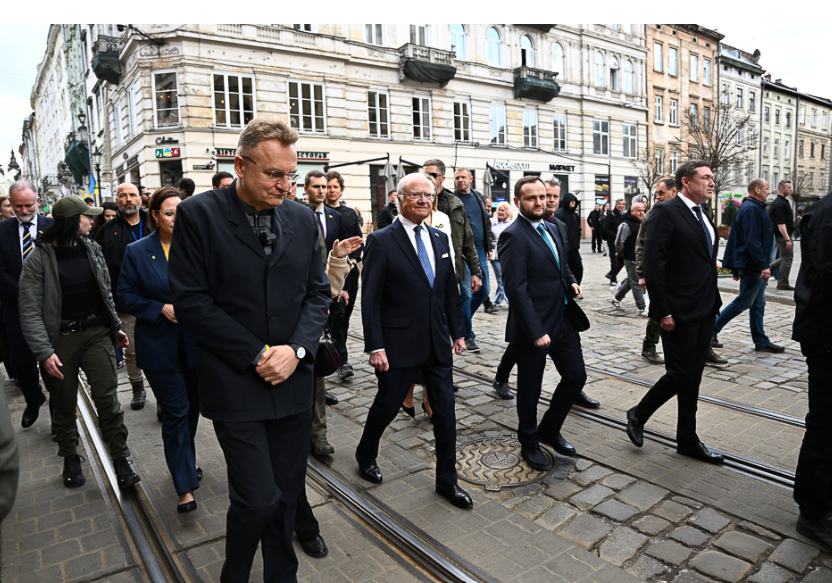 Den 17 april besökte Sveriges statschef, Kung Carl XVI Gustaf, staden Lviv i västra Ukraina för att möta president Volodymyr Zelenskyj och visa Sveriges fortsatta stöd till landet.