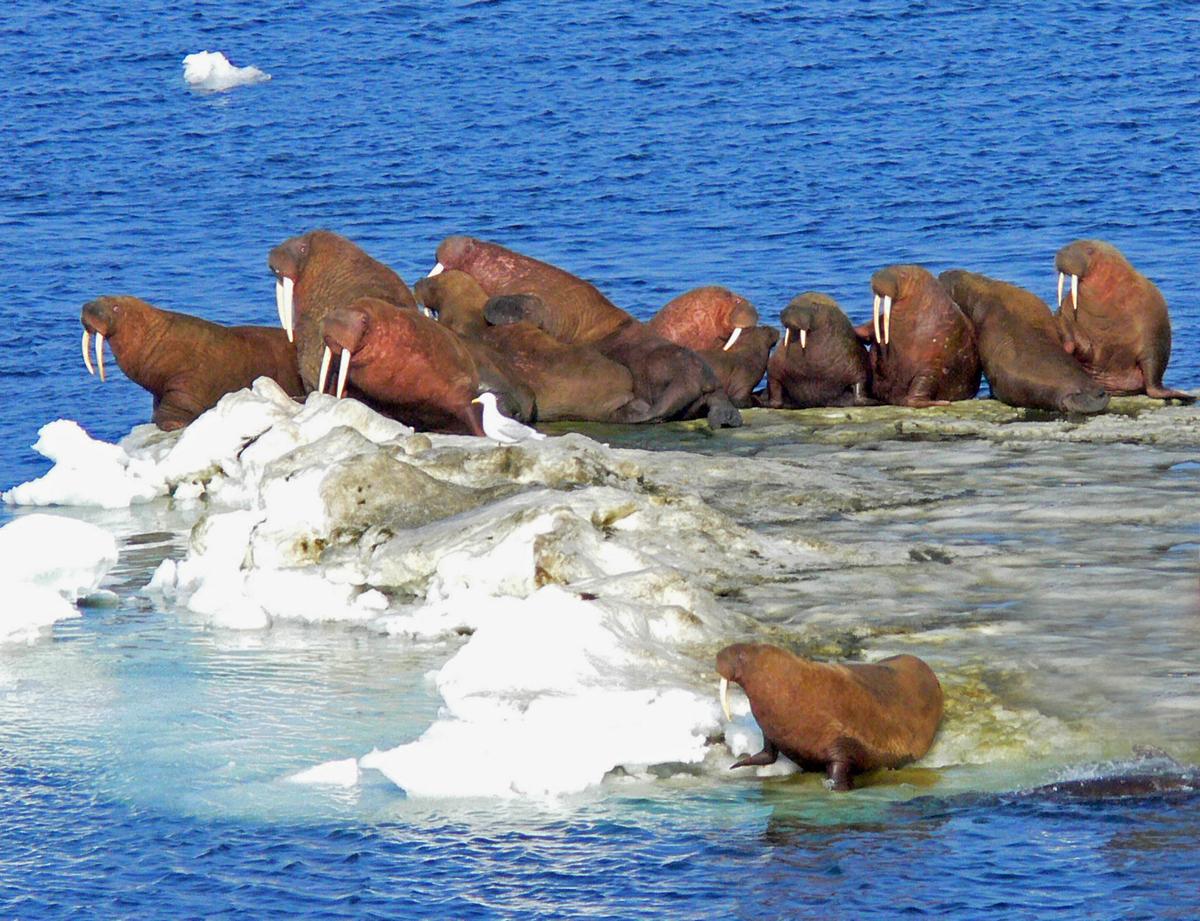 Valrossar, en sälart som lever i Arktis och kan väga upp till två ton, äter övervägande fisk och skaldjur – men ibland även havsfåglar.