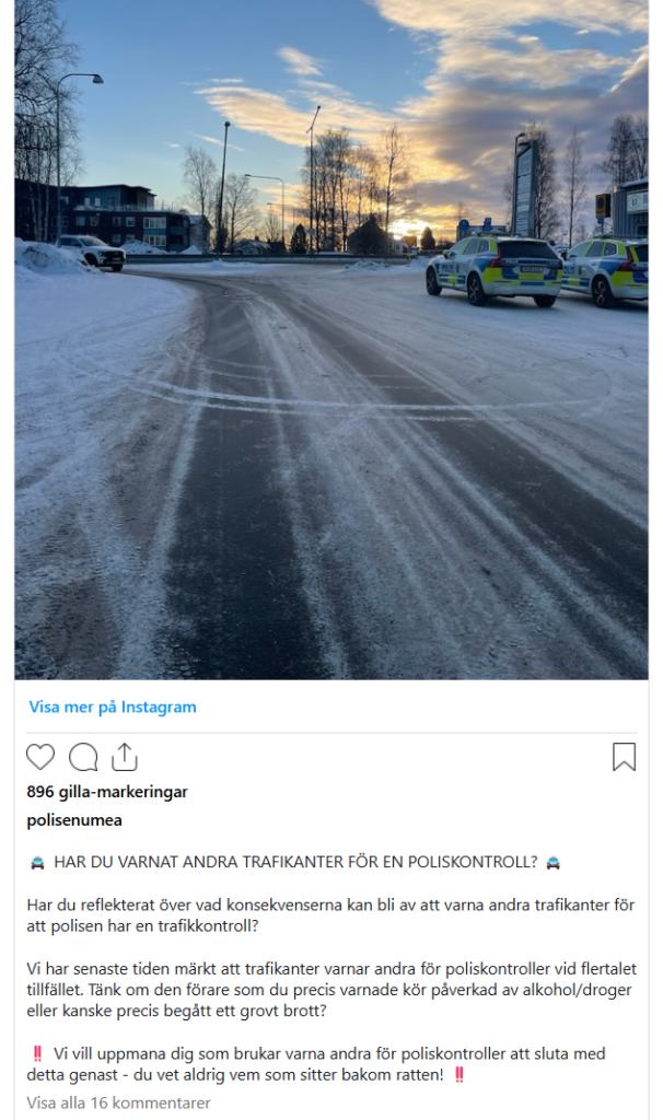 “Vi uppmanar att man inte ska hålla på att varna för vi vill ju träffa dem som inte vill träffa oss”, säger trafikpolis Johan Wåhlin till SR.