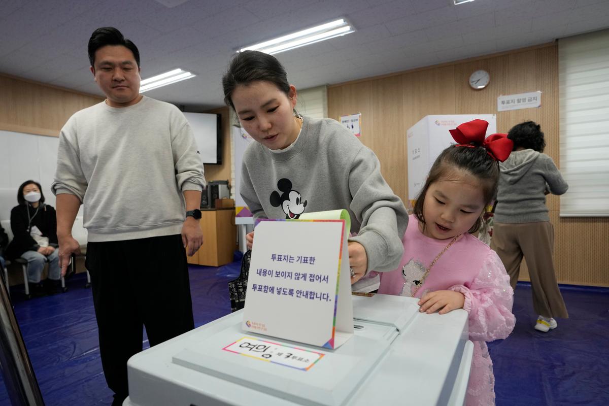 Oppositionen går framåt i sydkoreanska valetAhn Young-joon/AP/TTEn kvinna röstar tillsammans med sin dotter i en vallokal i Sydkoreas huvudstad Seoul.SydkoreaTT-AFP